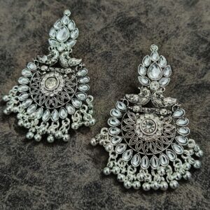 Crafted from high-quality oxidized metal, the earrings showcase intricate detailing that reflects the richness of cultural heritage. The vintage finish enhances their unique appeal, making them perfect for both festive occasions and everyday wear.
