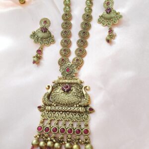 Embrace regal elegance with our Rajwadi Charm Stunning Copper Necklace Set. Inspired by traditional Indian craftsmanship, this exquisite jewellery piece is designed to make a bold statement, perfect for weddings, festivals, or special occasions.